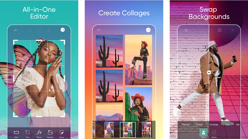 To be honest, the picsart is so easy to use; you don’t even need instruction to edit a photo or make a collage. You can add different background images, stickers, make your skin look fair or glowing, and much more. We suggest you look at the gallery to see the type of edited pictures available.